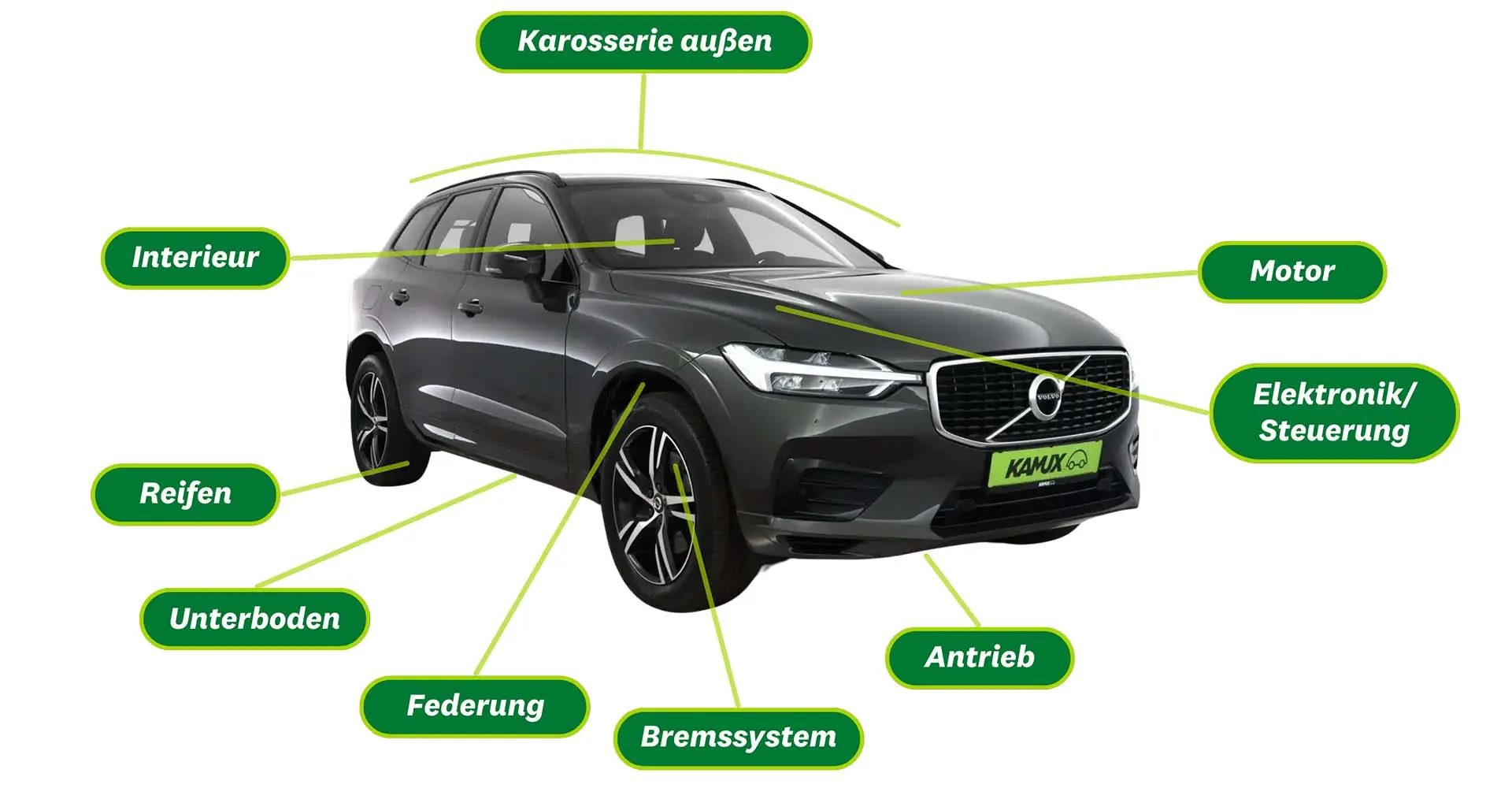 Jedes Kamux-Fahrzeug wird von unseren unabhängigen Partnern einer ausführlichen optischen und technischen Prüfung unterzogen. Technische Mängel werden für eine fachgerechte Reparatur gekennzeichnet. Optische Mängel werden für die Bearbeitung ausgewählt oder entsprechend gekennzeichnet.